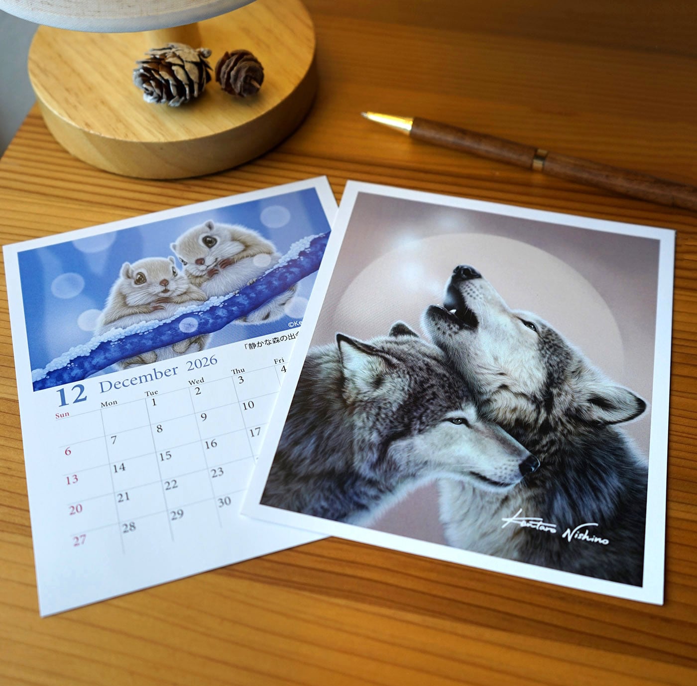 2026年の卓上カレンダー画集です。毎年人気のこの商品が、今年も新作として登場しました。小さめのサイズでデスクの上でも飾りやすく、予定やメモを書き込むのにも便利です。裏面の画集は12種類の大きな絵柄で、カレンダーを使い終わった後に飾って楽しむこともできます。