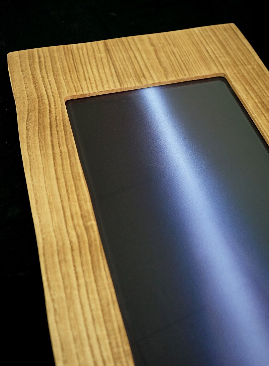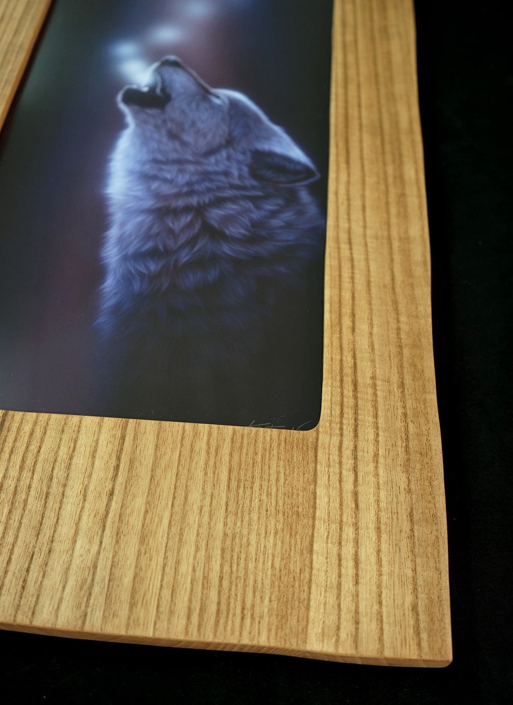 額は桐の木を使って1つ1つ作品に合わせて画家が自ら制作します。額には作品を保護するアクリルカバーも付きます。(※原画に使う天然の一枚板とは違い、版画には継ぎ目がある合わせ板を使います)
