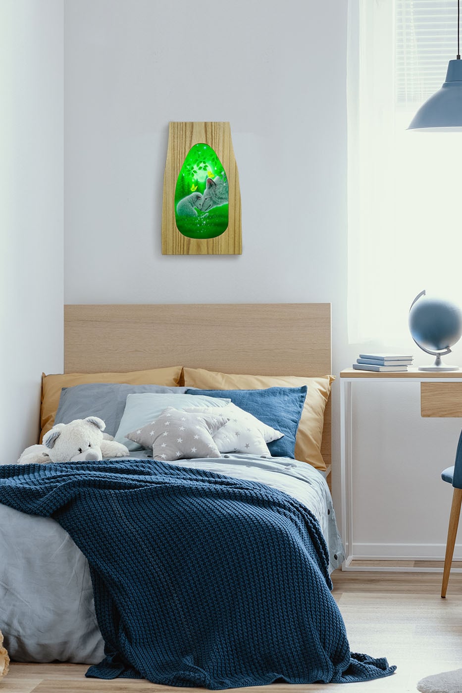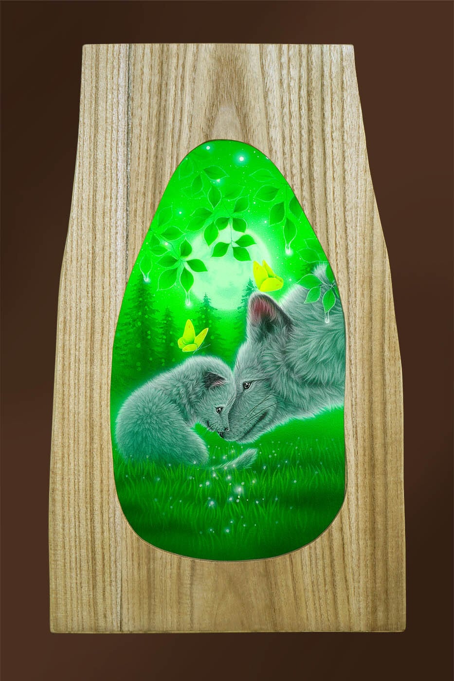 画家自らが原画を元に限定部数で複製したキャンバスに、動物の目や背景に直筆、絵の具で光や色を手描き加えます。