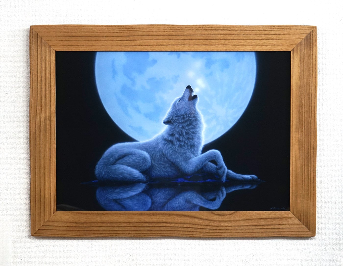 額付き複製画「静寂の夜 - オオカミ」 限定1点、10/31まで