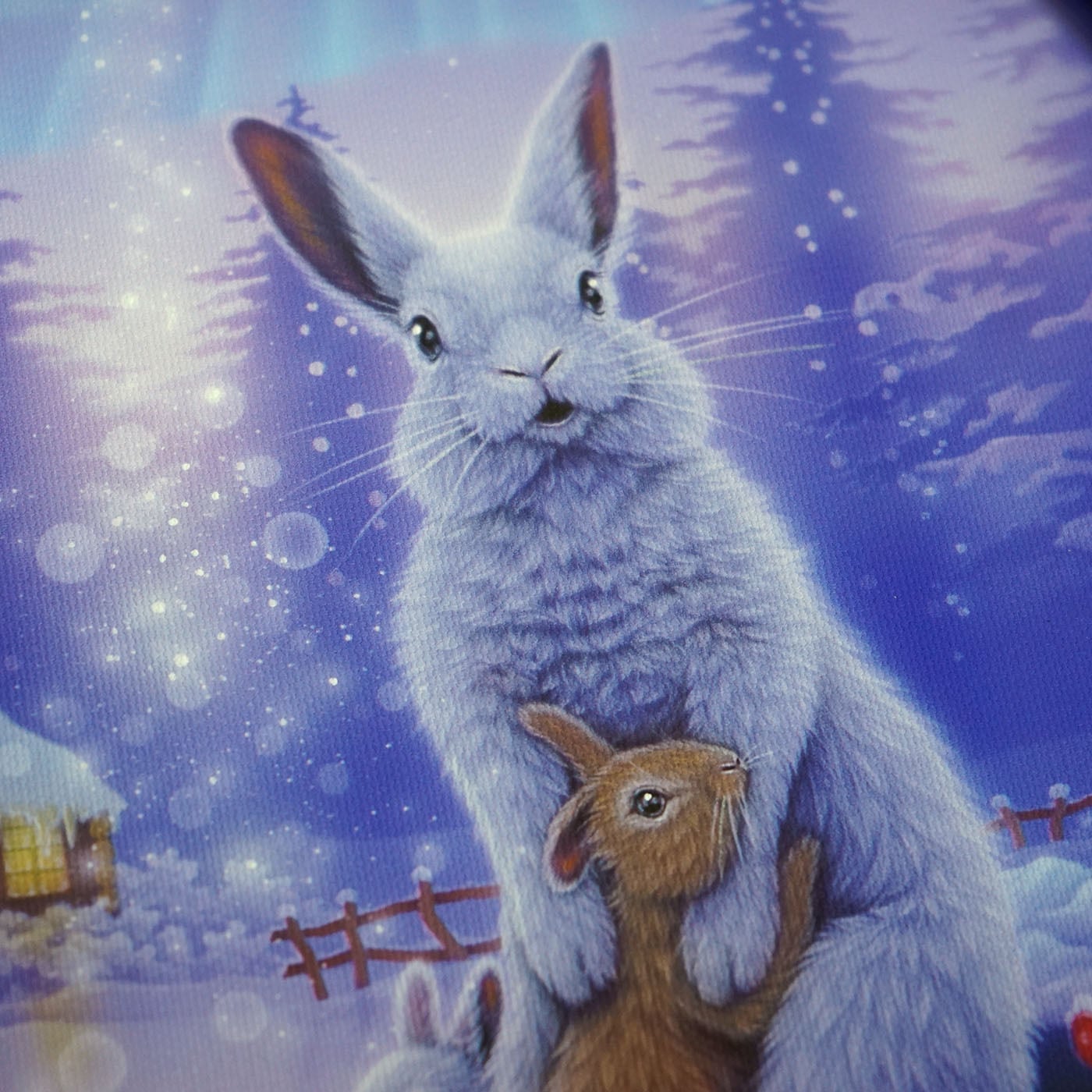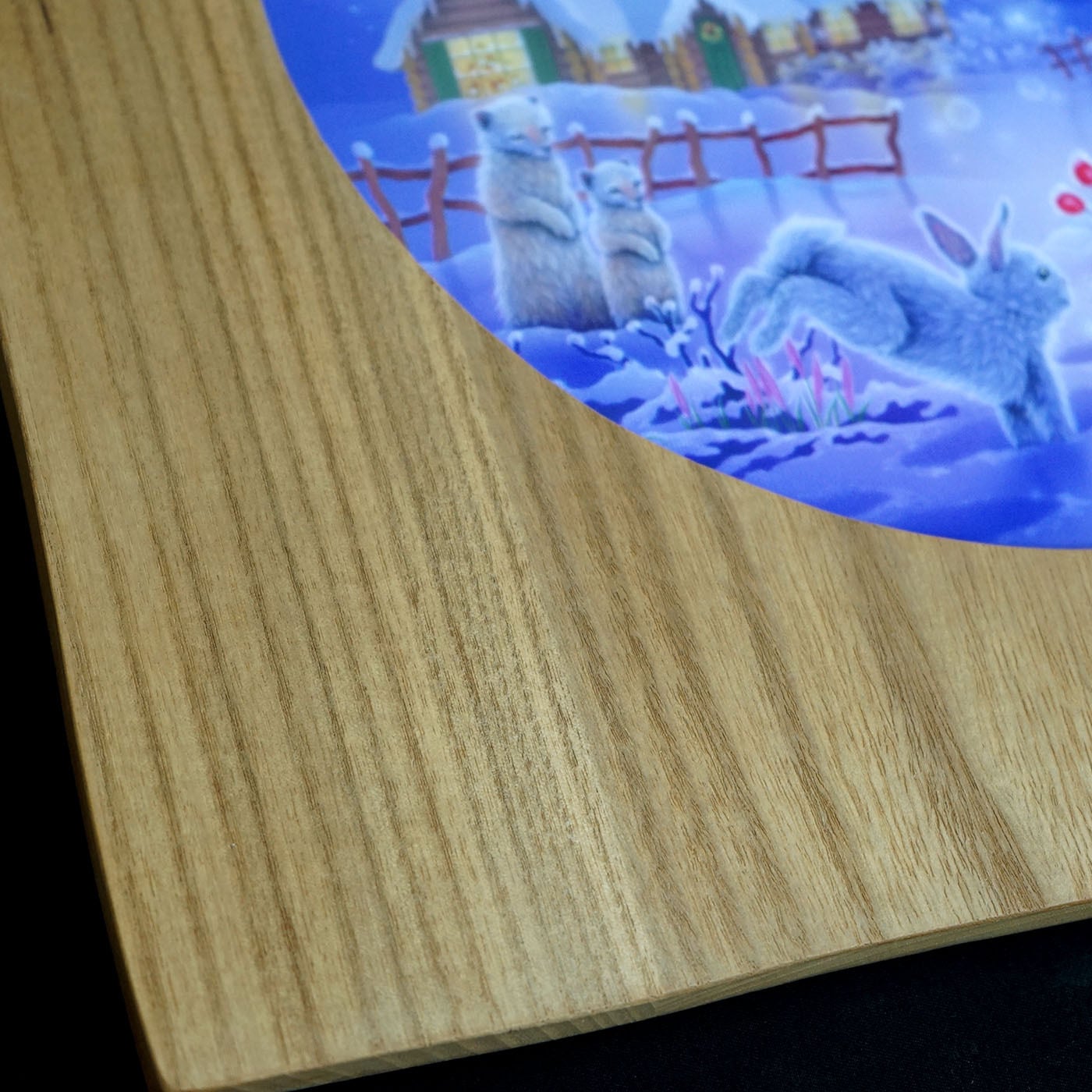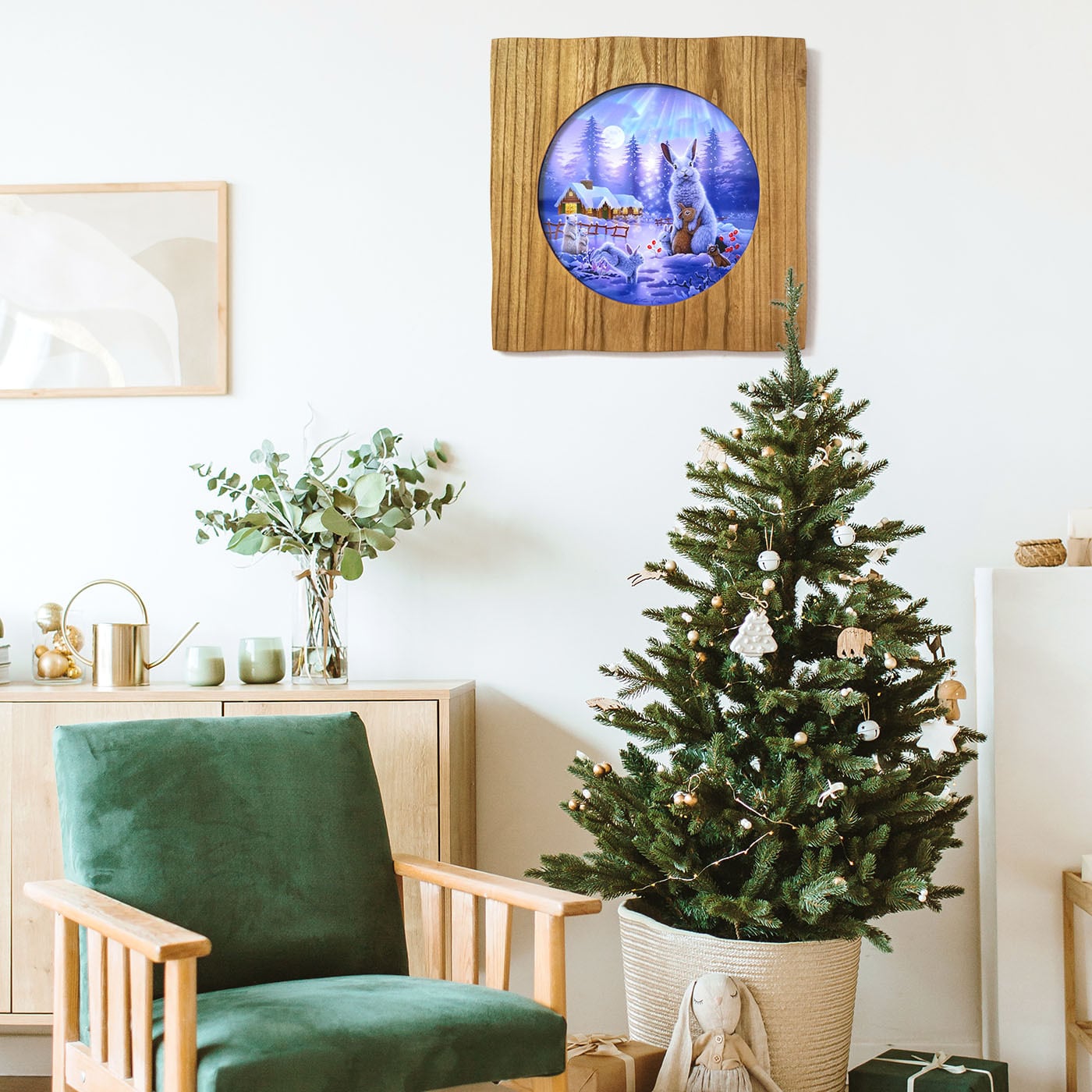 クリスマスの明かりが灯る小屋のそばで、家族で過ごす動物たちの世界を描いた作品です。